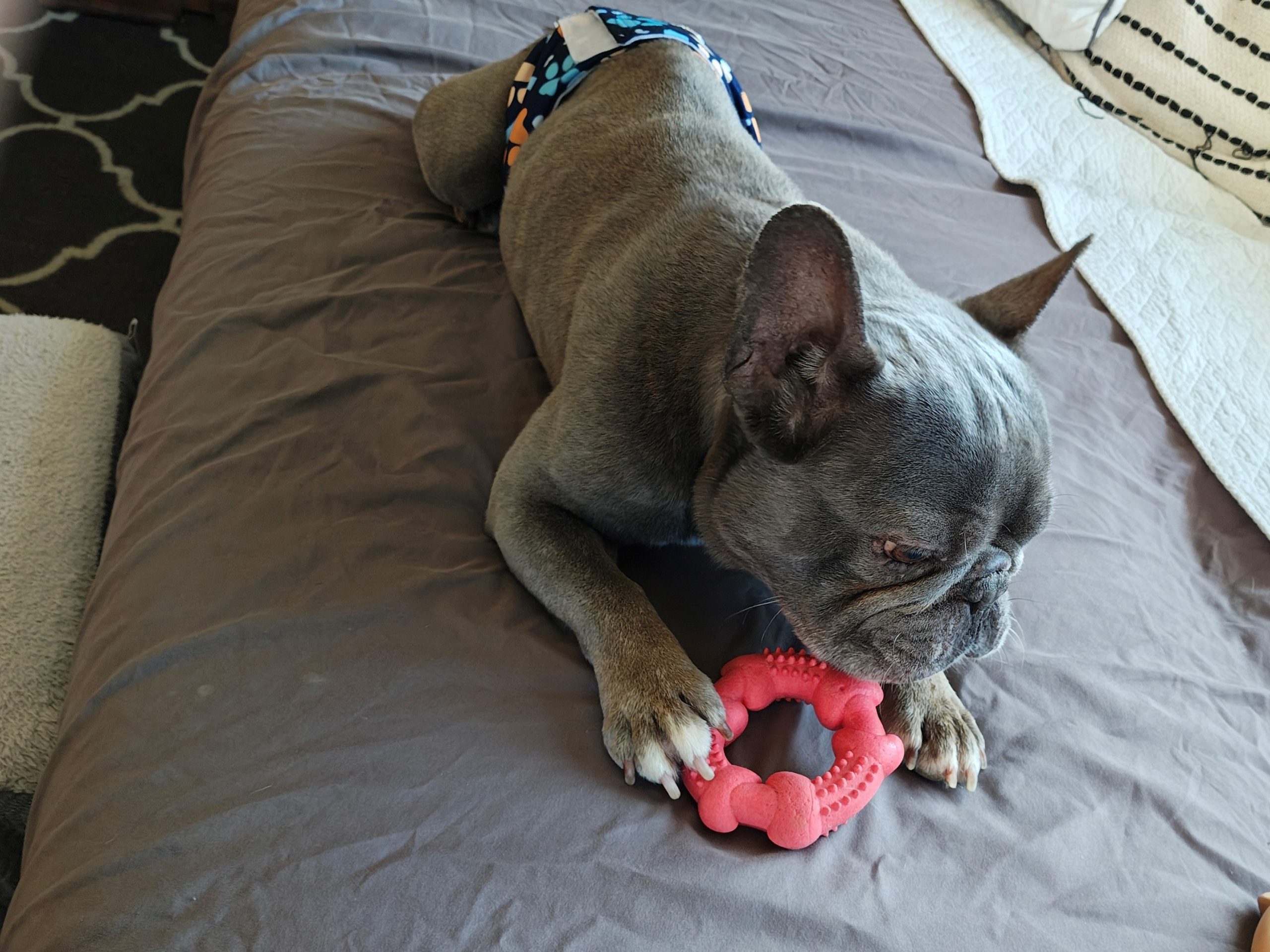Oh, and don’t you dare forget: I’m a French Bulldog. That means hot weather and I don’t mix—walk me early or late, or prepare to carry me home like Cleopatra. Daily eye drops? Yes. Sensitive stomach and allergies? Obviously. Feed me the good stuff—no bargain-bin kibble for this disgruntled yet wise Bulldog.