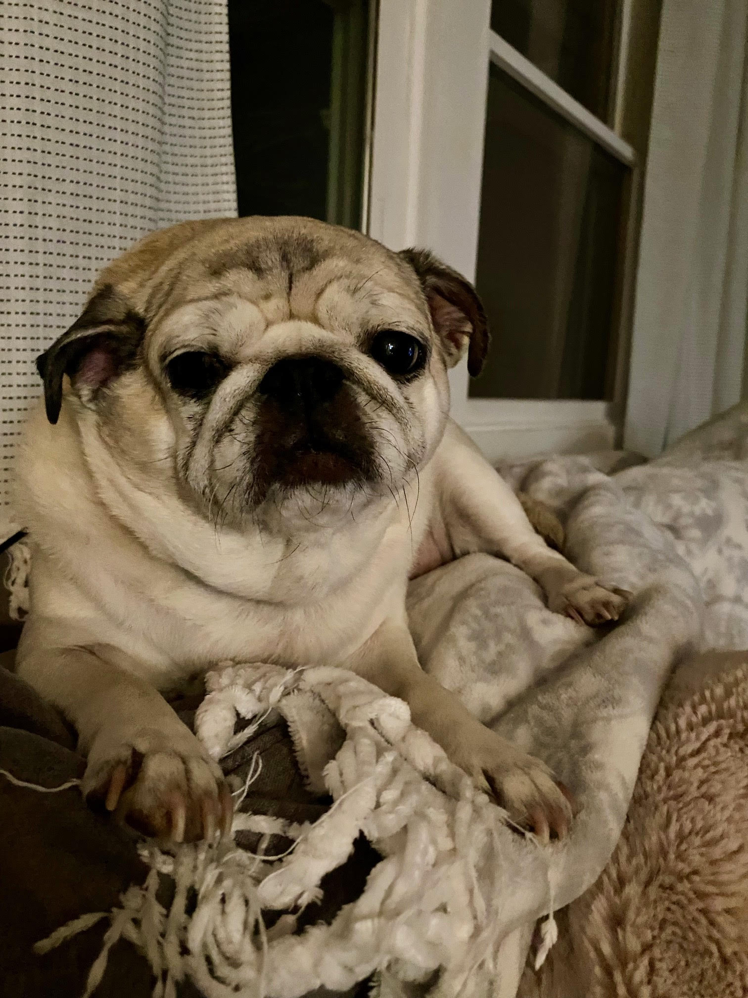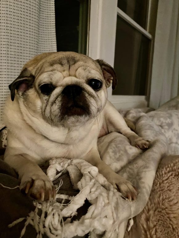 Meet Pippa, a ten-year-old Pug with a sugar-dusted face and a heart that has loved deeply her entire life.